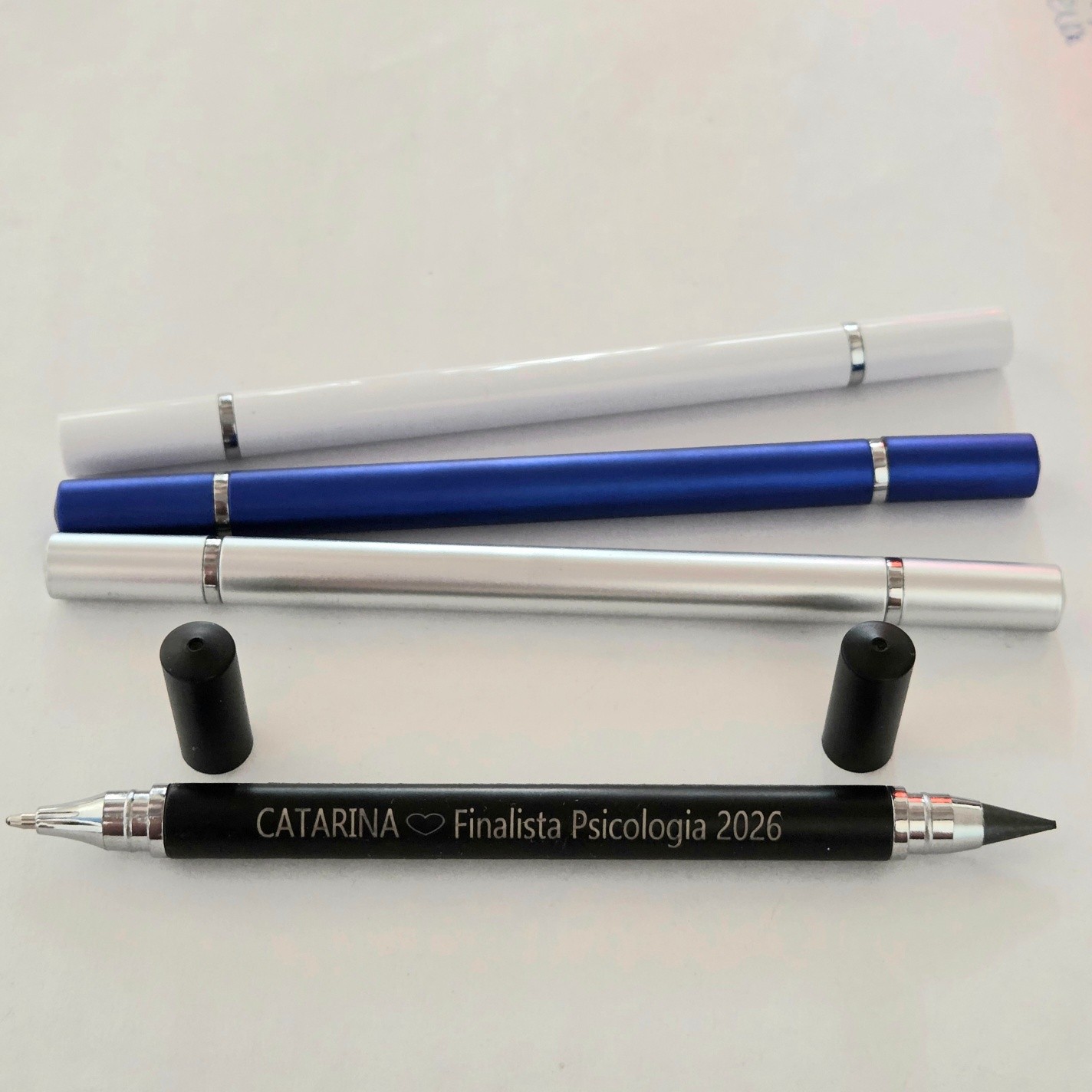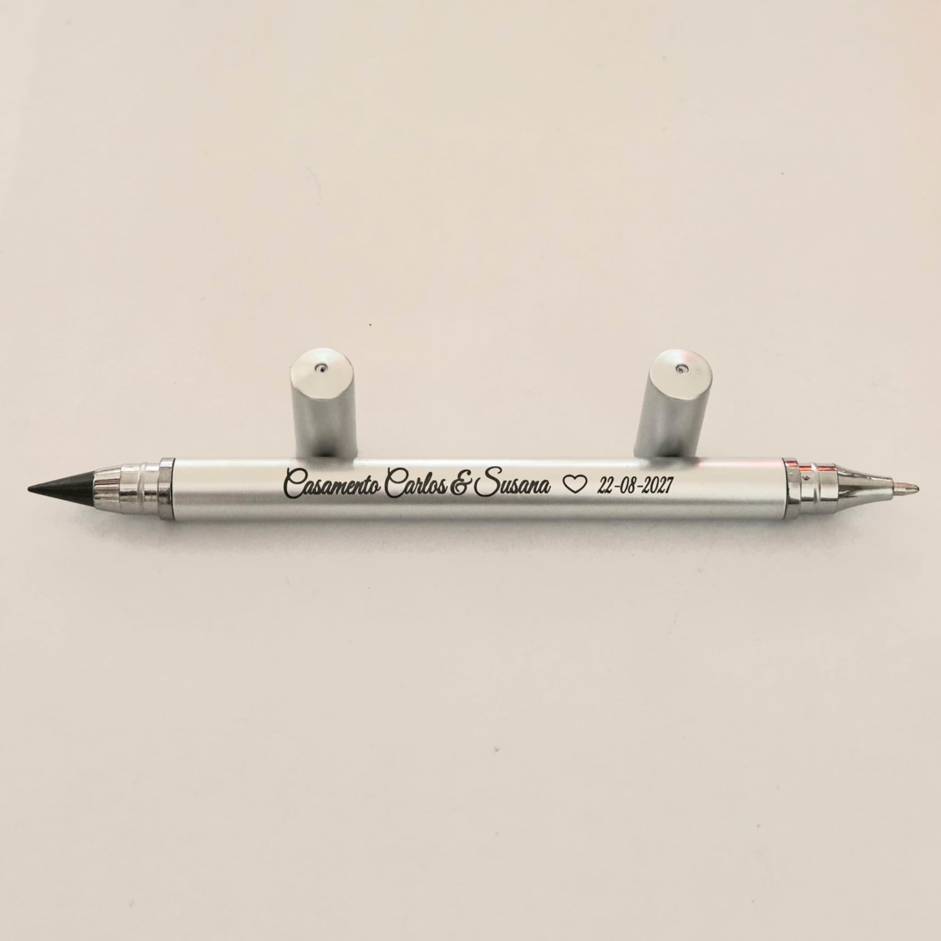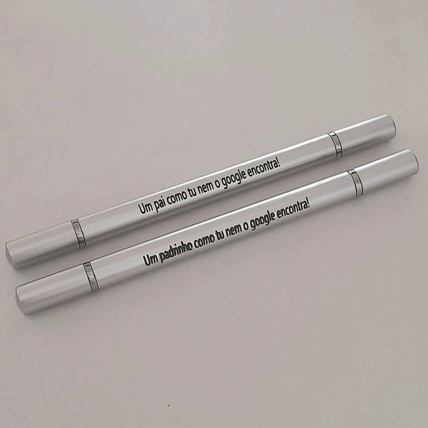 De um lado uma caneta, do outro um lápis infinito.